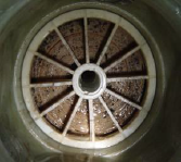 無機垢類污染:結(jié)垢是微溶或難溶鹽類的沉淀或沉積的水化學(xué)問題,一般出現(xiàn)在未設(shè)置恰當(dāng)?shù)念A(yù)處理而且回收率偏高的系統(tǒng)。結(jié)垢常發(fā)生在系統(tǒng)的最后一段,造成壓差增加,產(chǎn)水量下降。打開二段膜殼會發(fā)現(xiàn)有大量結(jié)晶物沉積在膜殼適配器以及膜元件上。