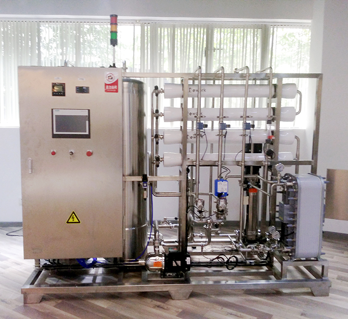 edi超純水機系統(tǒng)是指源水經(jīng)過反滲透法、離子交換法、EDI法或其它適宜方法制備。一般性的自來水經(jīng)過一級反滲透(RO)過濾后的純水電導(dǎo)率 10μs/cm以下,再經(jīng)二級反滲透(RO)過濾后水電導(dǎo)小于5μs/cm以下;二級RO產(chǎn)水再進電去離子(Electrodeionization,簡稱EDI)法處理后,最后再經(jīng)過原子級離子交換柱循環(huán)過濾,可連續(xù)生產(chǎn)出15-18兆的超純水。