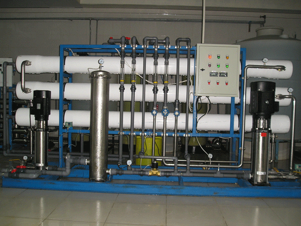 水機(jī)器為反滲  反滲透設(shè)備應(yīng)用膜分離技術(shù),能有效地去除水中的帶電離子、無(wú)機(jī)物、膠體微粒、細(xì)菌及有機(jī)物質(zhì)等。是高純水制備、苦咸水脫鹽和廢水處理工藝中的最佳設(shè)備。廣泛用于電子、醫(yī)藥、食品、輕紡、化工、發(fā)電等領(lǐng)域。鑫富淶反滲透設(shè)備是將原水經(jīng)過(guò)精細(xì)過(guò)濾器、顆;钚蕴歼^(guò)濾器、壓縮活性碳過(guò)濾器等,再通過(guò)泵加壓,利用孔徑為1/10000μm(相當(dāng)于大腸桿菌大小的1/6000,病毒的1/300)的反滲透膜(RO膜),使較高濃度的水變?yōu)榈蜐舛人?同時(shí)將工業(yè)污染物、重金屬、細(xì)菌、病毒等大量混入水中的雜質(zhì)全部隔離,從而達(dá)到飲用規(guī)定的理化指標(biāo)及衛(wèi)生標(biāo)準(zhǔn),產(chǎn)出至清至純的水,是人體及時(shí)補(bǔ)充優(yōu)質(zhì)水份的最佳選擇.由于RO反滲透技術(shù)生產(chǎn)的水純凈度是目前人類掌握的一切制水技術(shù)中最高的,潔凈度幾乎達(dá)到100%,所以人們稱這種產(chǎn)透純凈水機(jī)。